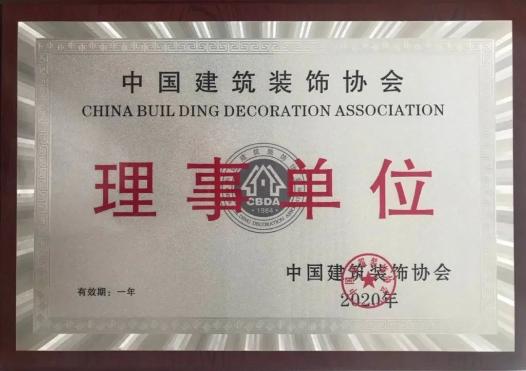 公司以扎實(shí)健全的質(zhì)量管理體系順利通過了由中國(guó)建筑裝飾協(xié)會(huì)組織開展的2020年建筑裝飾企業(yè)申報(bào)和認(rèn)定工作,同時(shí)受到了中國(guó)建筑裝飾協(xié)會(huì)的認(rèn)可和肯定,應(yīng)邀加入中國(guó)建筑裝飾協(xié)會(huì),榮升為中國(guó)建筑裝飾協(xié)會(huì)第八屆理事會(huì)理事單位。
